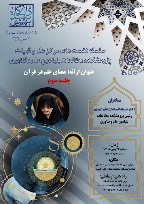 این نشست از سلسله سخنرانیهای علم و الهیات است که به همت مرکز"علم و الهیات" پژوهشکده مطالعات بنيادين علم و فناوری دانشگاه شهیدبهشتی برگزار میشود.